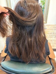 こちらのお客様は以前はクセがないストレートヘアだったそうで、ここ数年でくせが気になりだしたとおっしゃっていました。